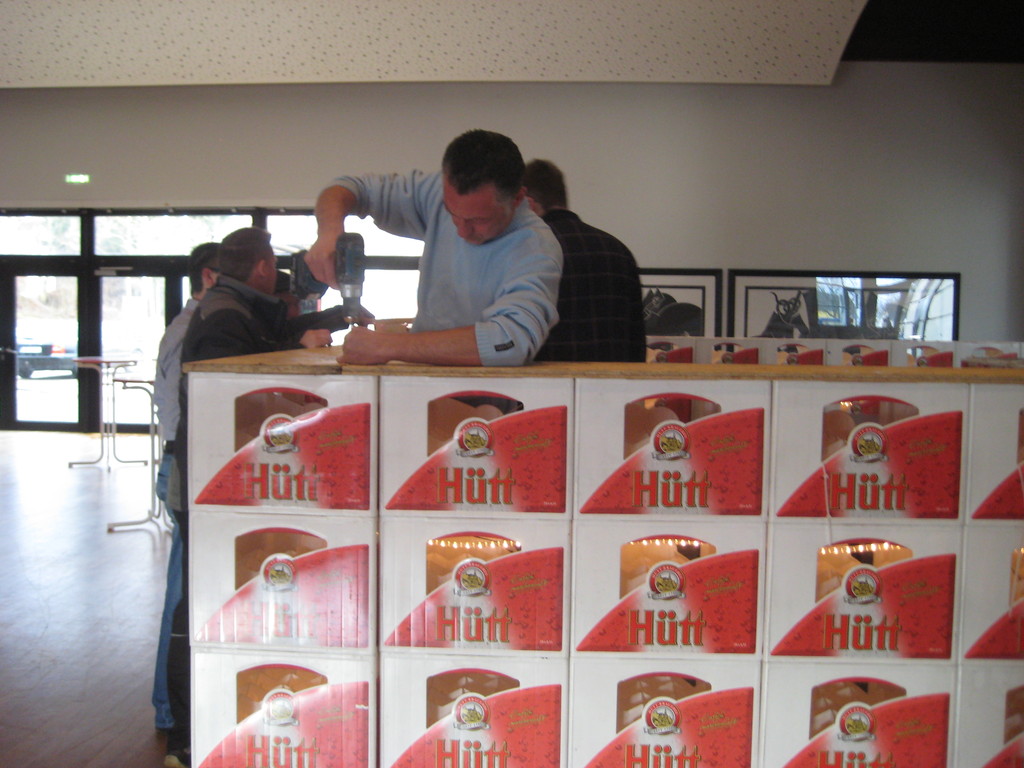 Eine gute Vorbereitung ist die halbe Miete. Die Helfer zur Silvesterparty 2011/2012 im vollen Einsatz um das Event des Jahres zu schaffen.